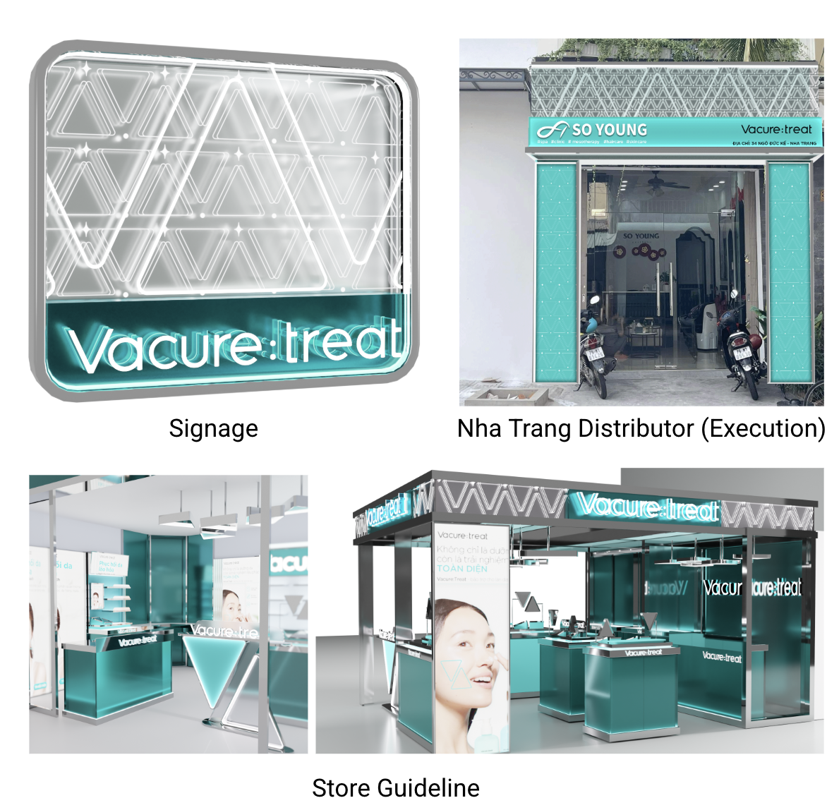 We built Vacure:treat from the ground up — spanning full brand strategy, identity system, monogram, packaging, website, e-commerce, OOH, YouTube, and store design.